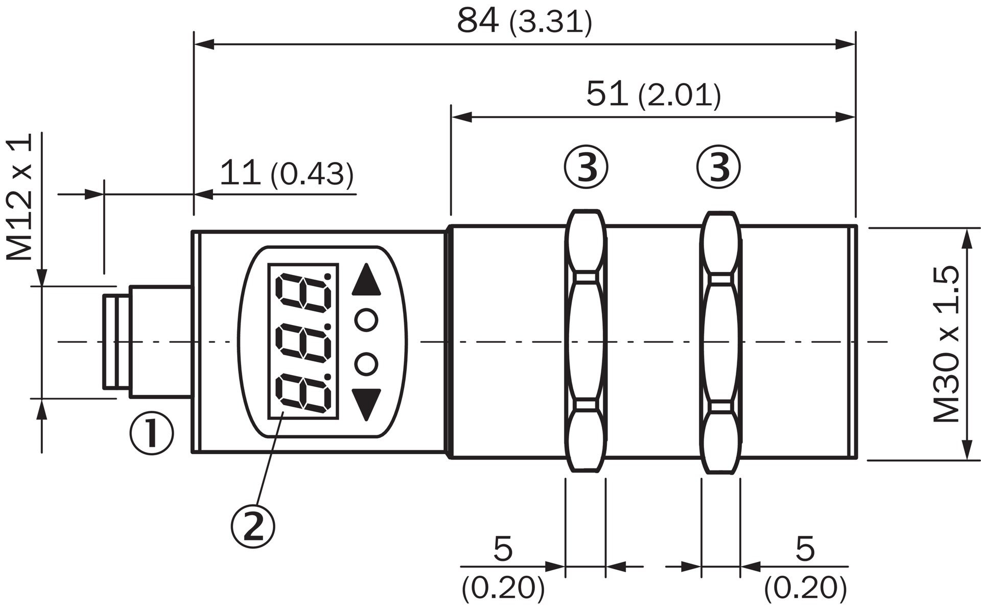 Dimensional drawing UM30-211, UM30-212, UM30-213