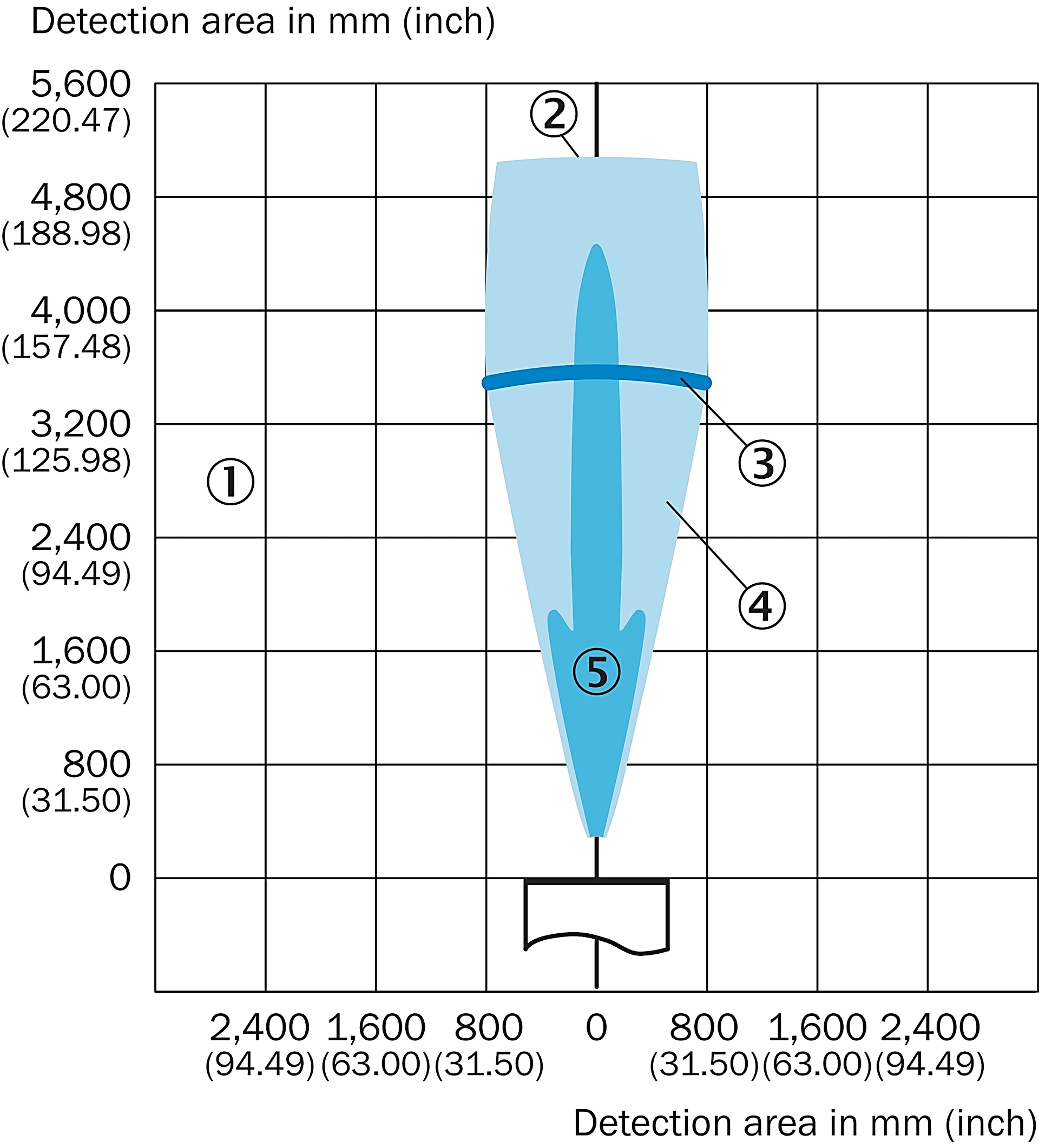 - Operating range, limiting range: 350 - 3,400 mm, 5,000 mm